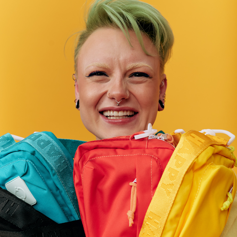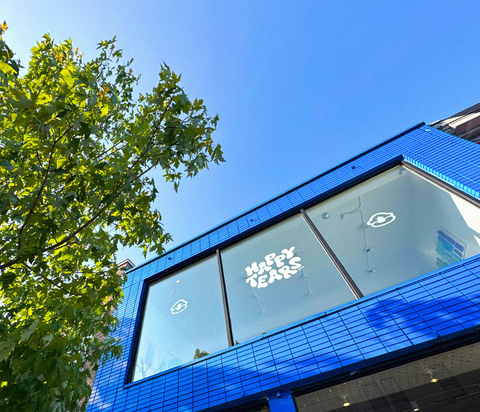 • 1 cotton drawstring pouch wrapped in a bold, glossy laminated sleeve with embossed happy tears lettering—designed to stand out on any shelf